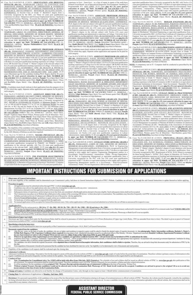 FPSC Jobs 2025 have been officially announced by the Federal Public Service Commission. These jobs are available for both males and females across Pakistan. Many positions are offered, including Assistant Director, Medical Officer, Security Officer, and more. Candidates with qualifications like Bachelor’s, Master’s, or MBBS can apply. This is a great opportunity for those who want a permanent government job with good salary and benefits.